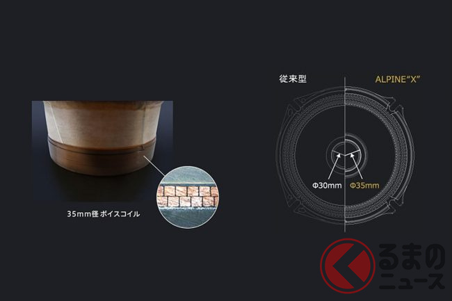 ツィーターの高音域がアクティブ・トップカバーで反射することによりダッシュボードから拡散され、車種専用のプレミアムサウンドが、より広がりのある音場で楽しめるそうです。ハイレゾ音源に対応するXシリーズスピーカーは、低音から高音までをバランス良く再生し、まるで目の前で歌い、演奏しているようなダイナミックでリアルな迫力ある音楽空間を創り出すとしています。
