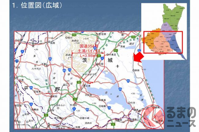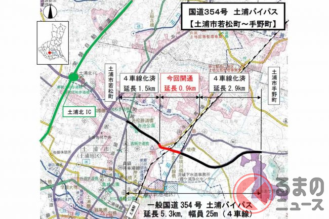 国道354号土浦バイパスの全線が4車線になります。これにより、常磐道の土浦北ICから鹿行地域へのアクセスが向上します。