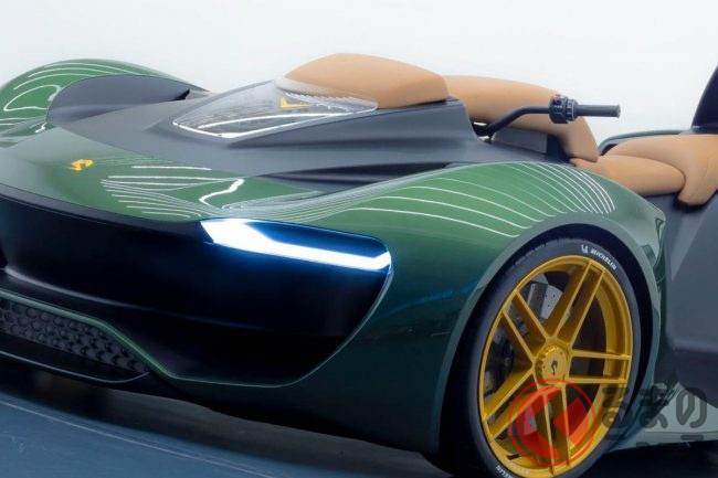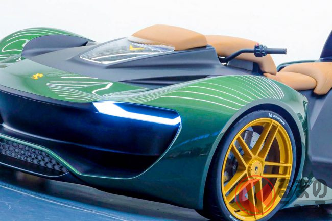 リアに搭載されるエンジンはV12。どこから供給されるかは現時点で伏せられていますが、独自のチューニングにより最高出力1200hp、最大トルク1200Nmと、にわかに信じがたいスペックを打ち出します。