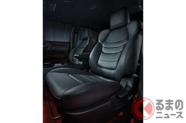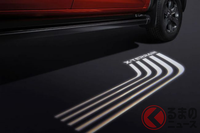 上級モデル「X-Terrain」では、レザーシートやドアトリムにアンバーのアンビエントライトを備えるほか、前席の足元やコンソールトレイなどにレッドの間接照明を装備するなど、ピックアップトラッククラスを超えた高級感を演出しました。