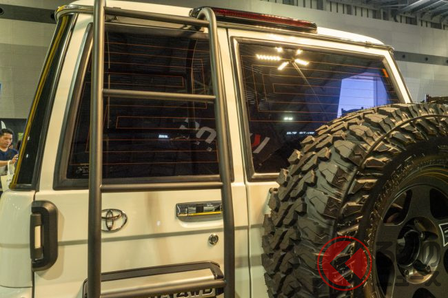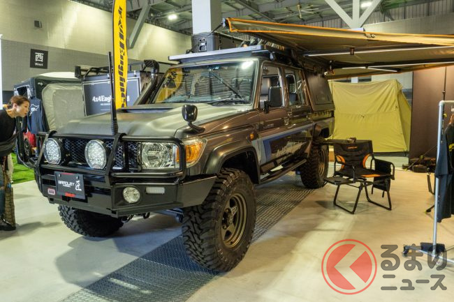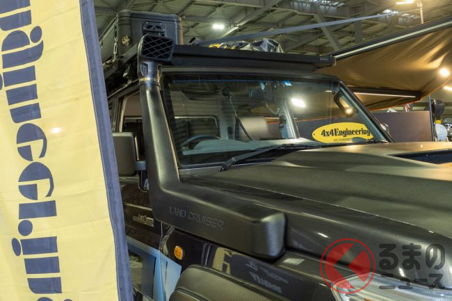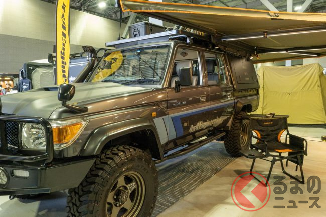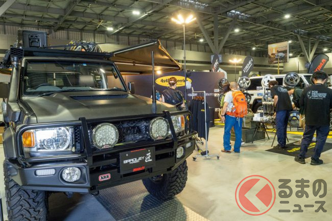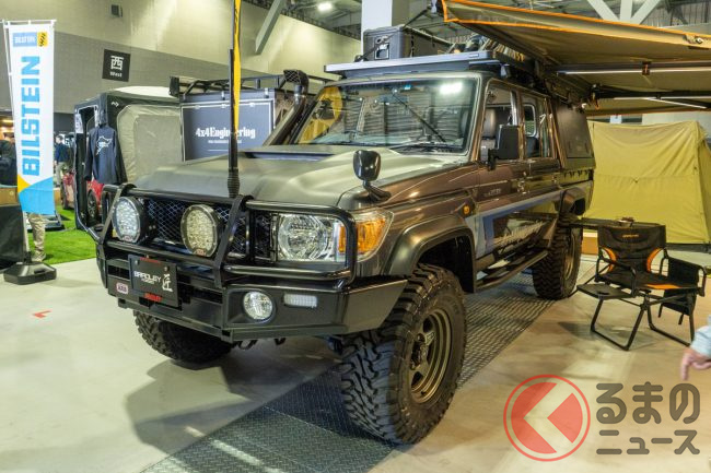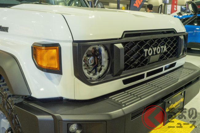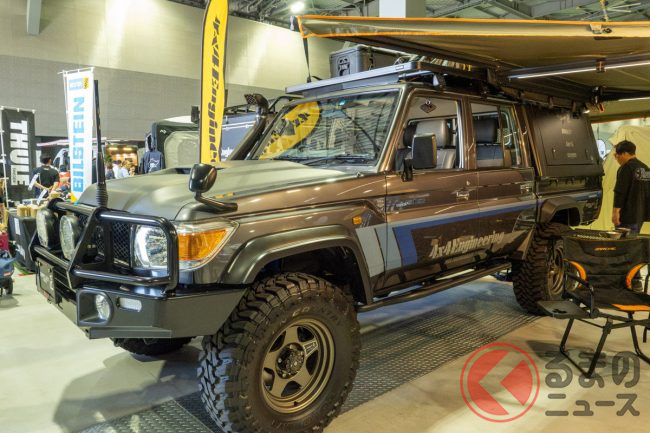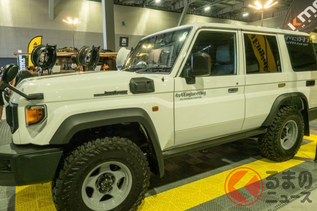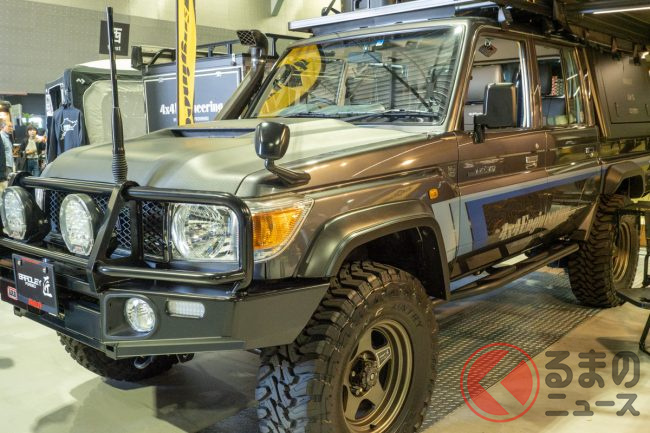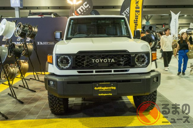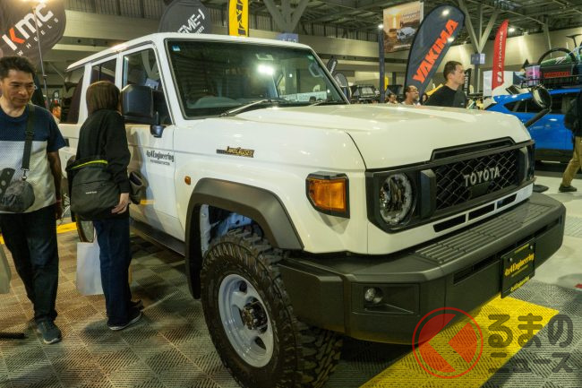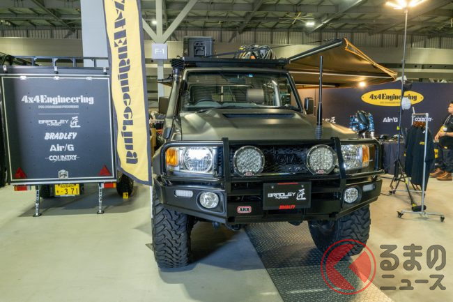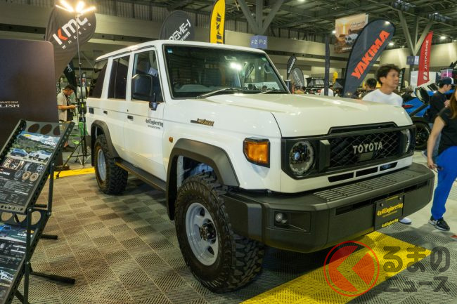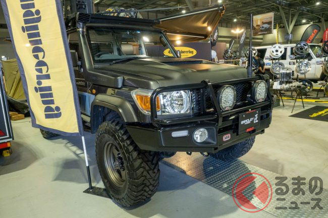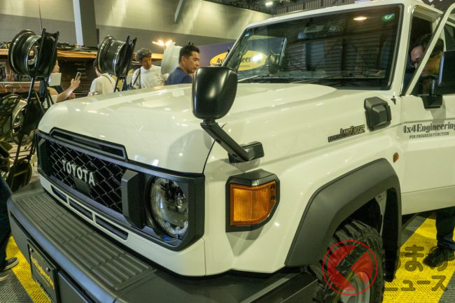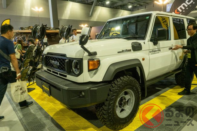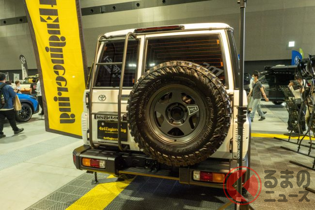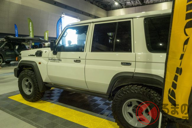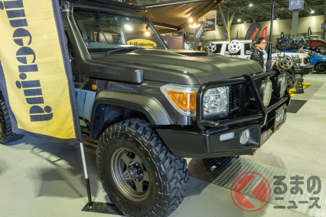 2台のトヨタ「ランクル70」実車展示! オーバーランド&リフトアップ、異なる仕様に注目!? ホイールやサスペンションも展示した4×4エンジニアリングサービスとは