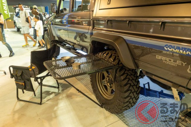 ブースには多くの来場者が足を運んでおり、グッズやアイテムを購入する人も多くいました。また、どちらの「ランドクルーザー70」も人気がありましたが、オーバーランド風の「ランドクルーザー70」に注目する人が特に多い印象でした。