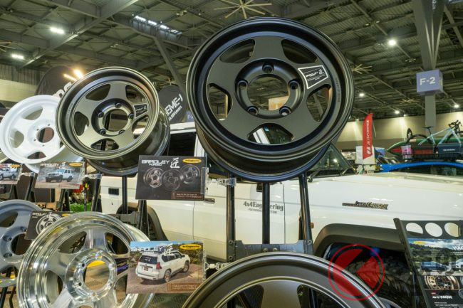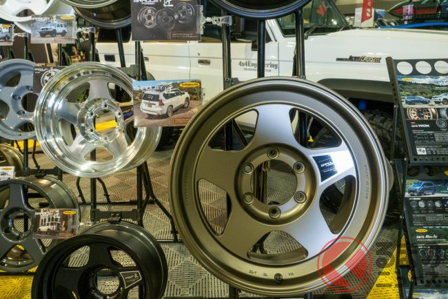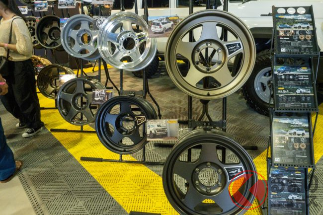 また、ブース内には同ブランドのキーホルダーやTシャツ、それにホイールやサスペンションなども展示されており、実際に販売も行っていました。