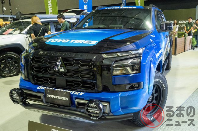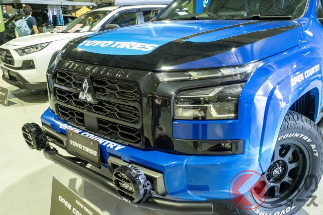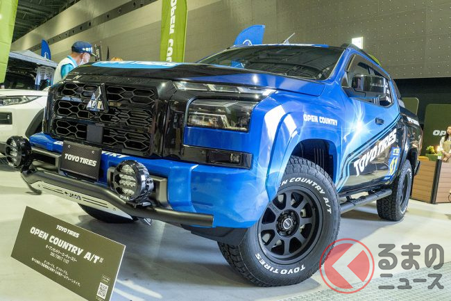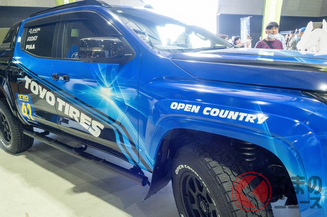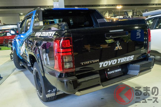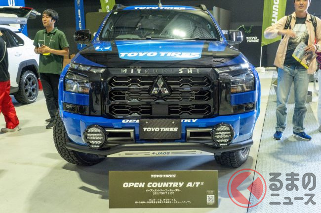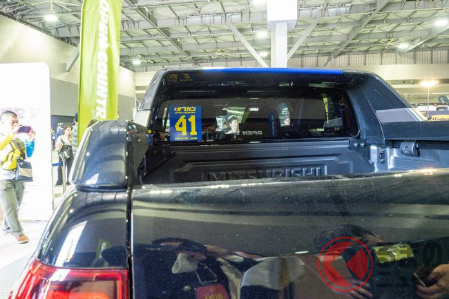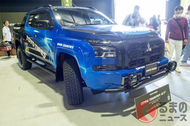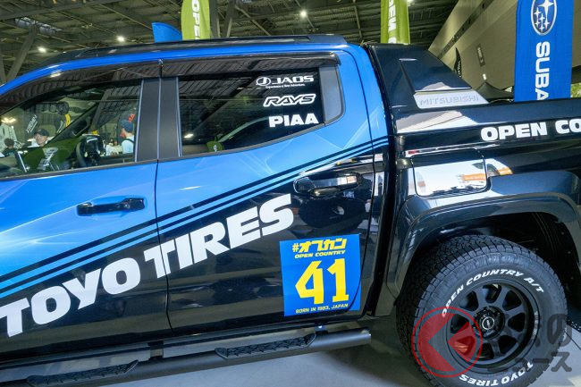 そんな3台ですが、会場で一番人気を集めていたのはやはり「トライトン」でした。トーヨータイヤらしさを全体で表現したカラーリングに加え、近年の三菱車の中でも特に人気の高いピックアップトラックだけにその注目度は高く、多数の来場者が写真を撮っていました。
