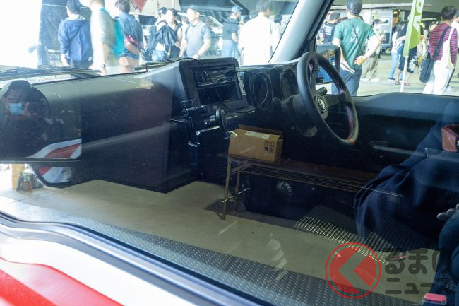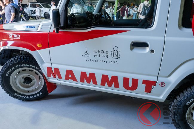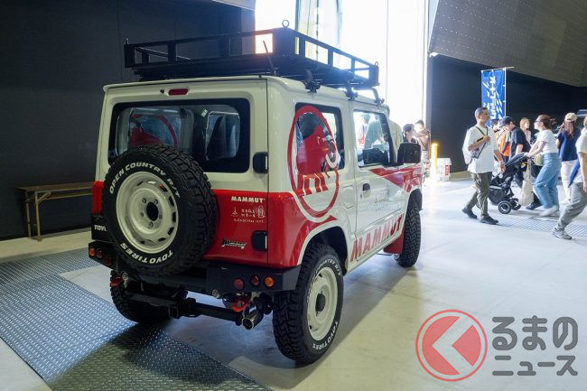 さらにもう1台展示されていたのがスズキ「ジムニー」です。こちらはスイス発祥の老舗アウトドアメーカー「マムート」とコラボした特別モデル。レトロな印象を受けるカラーリングが魅力的な1台です。