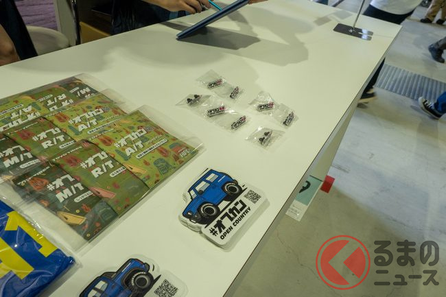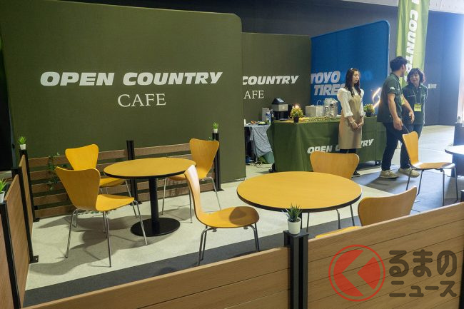 ブース内では他にも、オープンカントリーブランドのタイヤを展示したコーナーや商談スペースなども設置されていました。また、スタッフからはInstagramをフォローするともらえるコーヒーやステッカーなども紹介され、こちらも人気を集めていました。