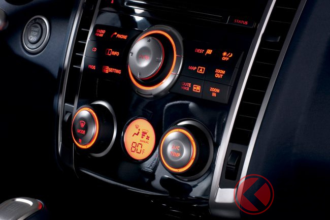 インパネやナビゲーションの操作パネルはレッドの照明で、メーターはタコ・スピードともに6時開始位置に設定。ペダルもアルミとなっているほか、ステアリングやセンターコンソール、ドアトリムなどにポリッシュ加工のアルミパネルを装備するなど、スポーティな雰囲気が表現されています。