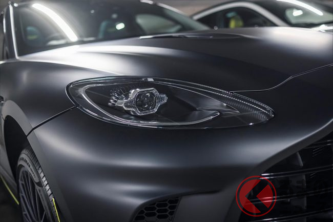 アストンマーティンのビスポーク(オーダーメイド)サービス「Q by Aston Martin」の手によって、日本独特の自動車文化をモチーフとしたデザインが取り入れられ、真夜中の都会の高速道路をかけるドライブやカークラブの集いなど、モデル名に採用された「ミッドナイト」を想わせるマット調のボディカラーを採用しました。