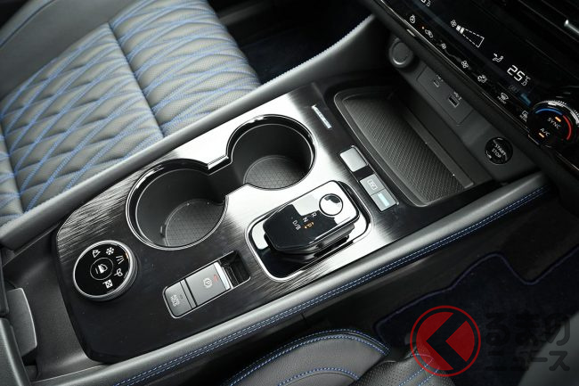 コンソール部分は宙に浮かせたブリッジ構造を採用。ラージサイズのカップも置けるホルダーが設置されたほか、コンソール下にはティッシュボックスやひざ掛けなどを収納することができます。