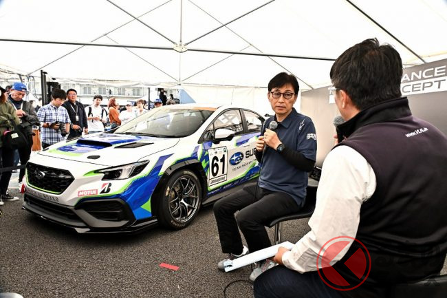 今回の発表時には、スバルがS耐に参戦する理由を、マシンを走らせるTeam SDA Engineeringの本井雅人チーム代表は「スバルとしてS耐に参戦理由が2つあります。まずエンジンを残したい。ターボを使ってカーボンニュートラルにチャレンジしなくてはいけない。この技術力を高めるためです。2つ目がスバル車を開発するエンジニアを育成することです。昔は1人でクルマ全部をみる開発者がいましたが、段々と細分化されていくと自分が見るところだけしか分からない。 やっぱりクルマ1台見られるようになってほしいという理由です」と語ります。