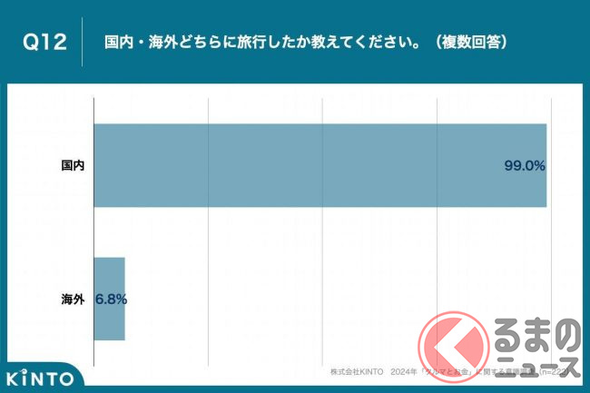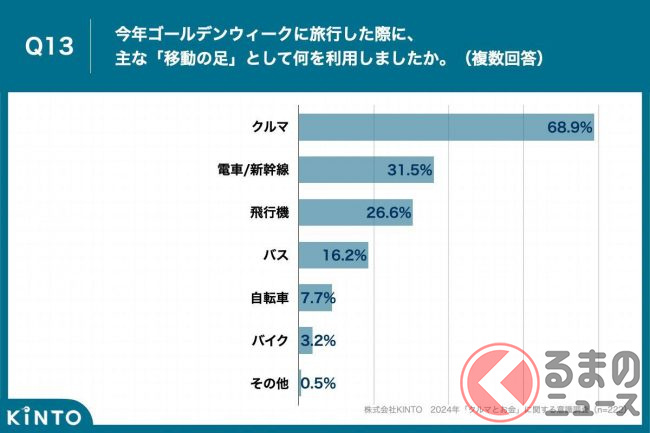 24年のゴールデンウィークは、円安の影響もあってか、大多数が国内での旅行を選んだと回答し、その中で「クルマ」が「移動の足」として最も多く利用されました。