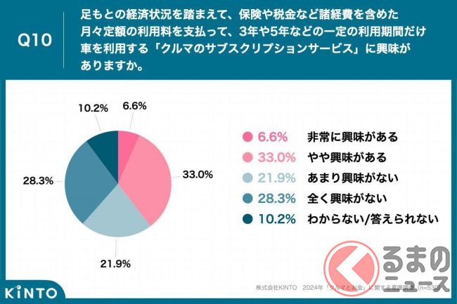 近年、自動車メーカー各社がクルマのサブスクを提供しており、利用する人が増加するなか、新たなクルマの所有の仕方として興味を持つ人がいることがわかりました。