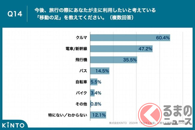 24年は3日以上の連休が11回もあり、例年より休日が多いことから、旅行の機会もより多くなると見込まれています。そして、利用したい移動手段の首位となったのも「クルマ」でした。