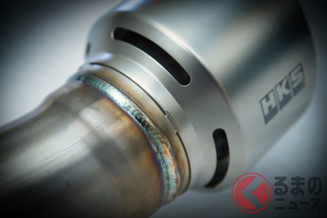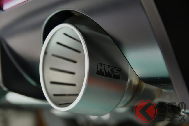 HKSの「スーパーターボマフラー」は、圧倒的な排気効率を実現しつつ厳しい音量基準もクリアしたスポーツマフラーです。ターボ車のマフラーに求められる基本性能「低排圧」を実現しつつ「快適性」を左右する常用回転域の不快なこもり音を抑制し、心地よいスポーツサウンドを奏でるとしています。厳しい国内騒音基準をクリアしているので、車検にも問題なく対応しています。