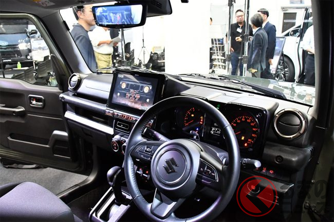 ナビの基本的なデザインは、同社が今年の1月に発売し好評を博しているという三菱「デリカミニ」専用10型カーナビ「BIG X」をベースにしていますが、タフなジムニーの車室内を演出するべくパネルの四隅に本物のボルトを埋め込むなど、ジムニー/ジムニーシエラ専用のデザインにしています。
