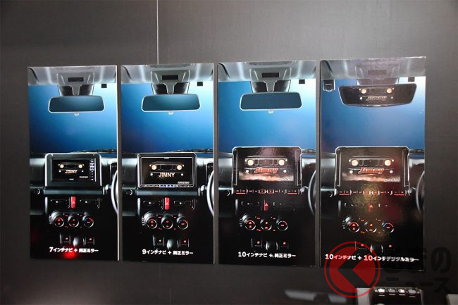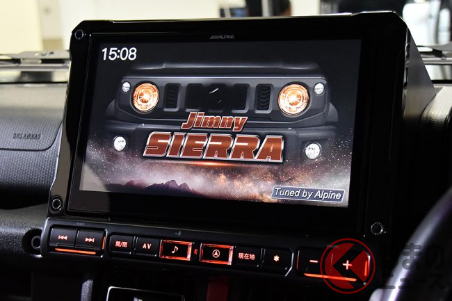 イグニッションオンで表示される車種専用のオープニングデザインも一新し、“ライトな冒険感”を演出した「Jimny」と、初代ジムニーのロゴを想起させノスタルジックさやヘリテージをリスペクトした「ジムニー」という書体のオープニングアニメーションを開発。シエラ用も含めた、ジムニーらしい4パターンのデザインにより、エンジンをかけた際の高揚感を演出したとしています。またイルミネーションは、ジムニー/ジムニーシエラの操作パネルに純正で採用されているアンバー色とそろえた配色とし、“純正を超える超純正”な専用デザインを設計したと同社の担当者は説明します。