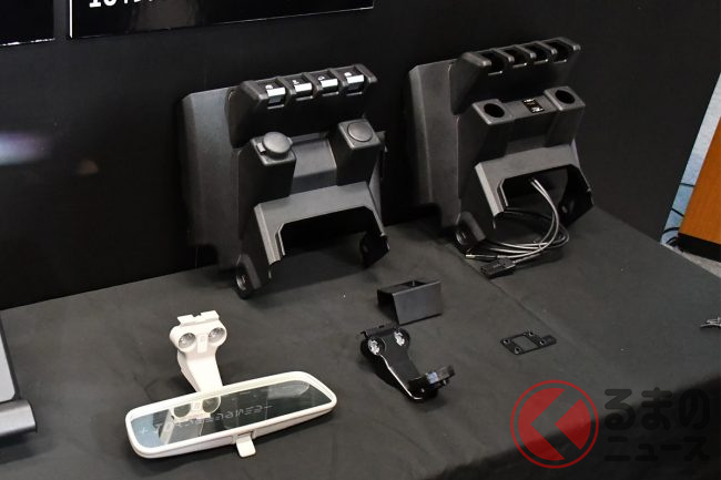 前述のとおり、ジムニー/ジムニーシエラの車室空間において、ルームミラーとナビの間隔が狭いという点に着目した同社は、従来のスズキ車で汎用(はんよう)的に使用されている2ピース構造のアームでは、ジムニーに装着した際に前方視界が遮られるとし、今回新たにジムニー専用の1ピース構造のアームを開発。従来比で、上方および奥側へ各25ミリオフセットしたことにより、前方視界を確保しつつ、アーム交換タイプのデジタルミラーを装着可能にしたと言います。
