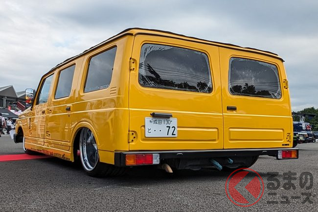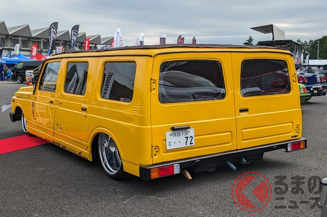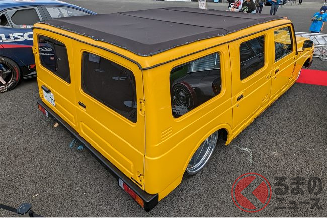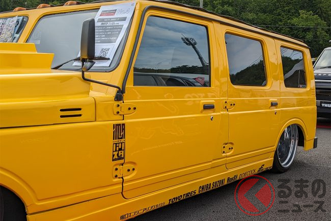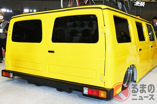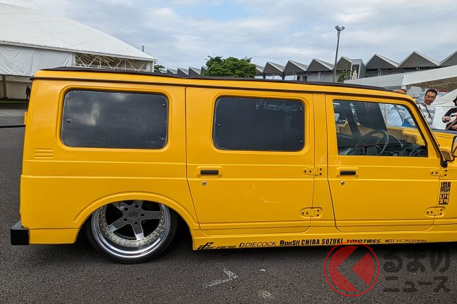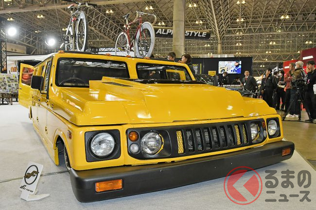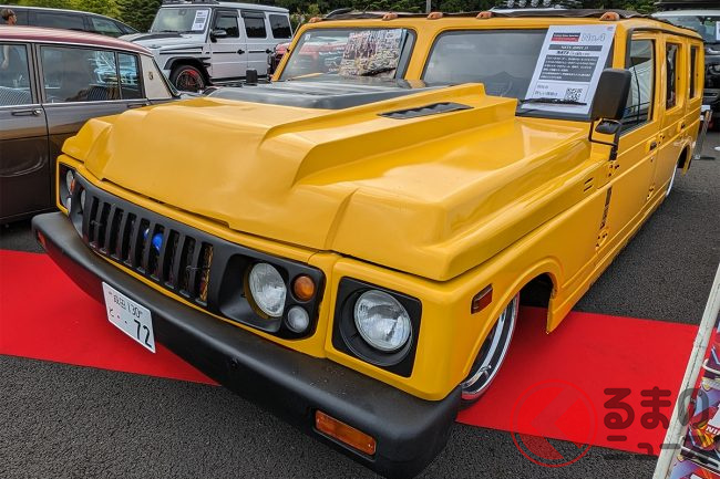 目がバグる! スズキ「ジムニー“6ドア”」実車公開! 超ワイド&ロー+V6エンジン搭載!? 斬新「“2倍”ジムニー」に来場者も驚き!