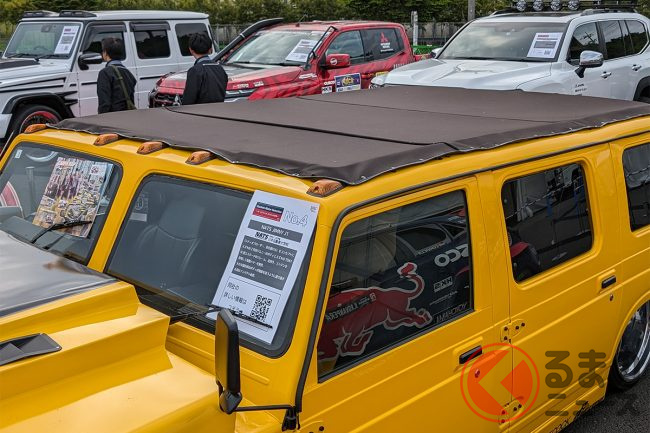 テーマに「オールジャンル カスタムの世界」を掲げ、過去のS耐参戦マシンをはじめ、カスタムカーやチューニングカーなどを紹介していましたが、そのなかでも特に来場者を集めていたのが、スズキの軽四輪駆動車「ジムニー」をベースにしたカスタムカー「NATS ジムニー J1(ナッツ ジムニー ジェーワン」です。