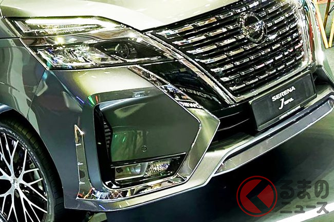もはや「エルグランド」超え!? 日産「“ド迫力”セレナ」実車公開! 「ギラ顔」&「スゴイ赤内装」がカッコイイ! 高級仕様「セレナ J“インパル”」マレーシアに登場