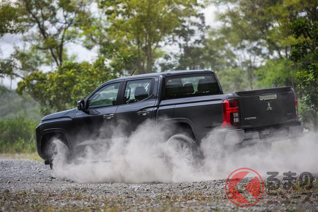 三菱は2024年3月の「バンコク国際モーターショー」において、トライトンとプラットフォームを共用する年次改良モデルの「パジェロスポーツ」を発表していますが、明らかにこれとは違うフォルムです。