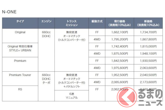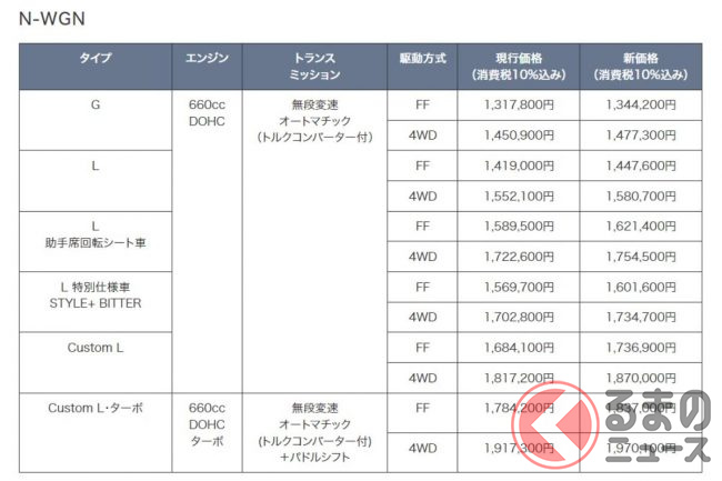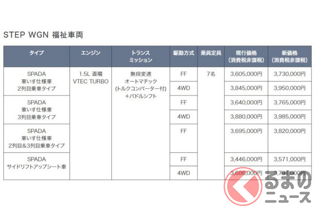 その他、福祉車両である「車いす仕様」や「サイドリフトアップシート車」も価格改定され、FFは12万5000円、4WDは10万5000円の値上げとなります。