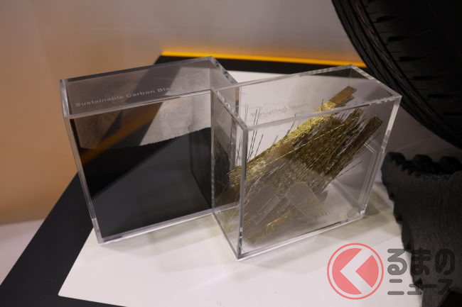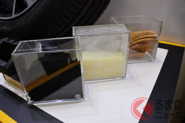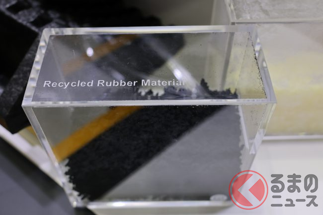 ペットボトル由来のポリエステル糸素材や、もみ殻由来のシリカ、サステナブルカーボンブラック、リサイクルゴム、リサイクルスチールなどを利用し、再生可能なサステナブル素材の利用率は、最大65%にも及ぶといいます。
