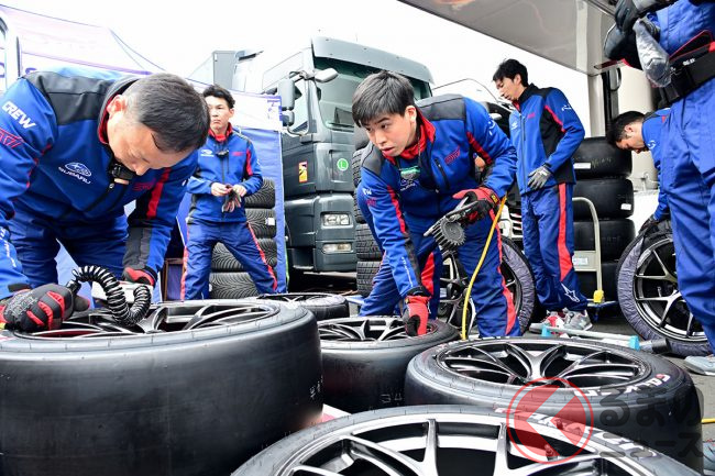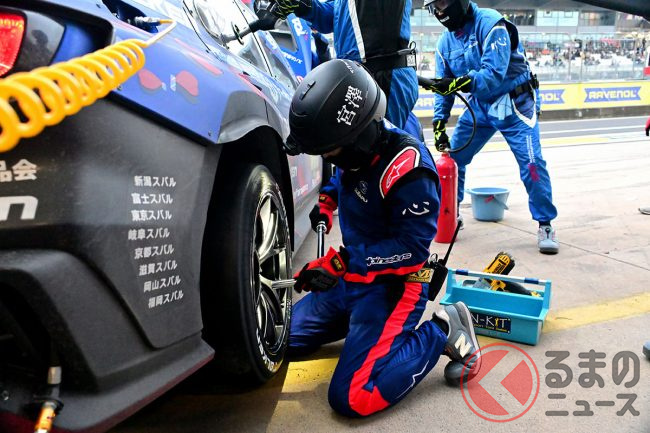 ニュル24時間には、全国のスバル販売店から立候補したメカニックが選抜されて派遣されます。