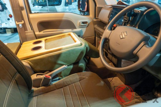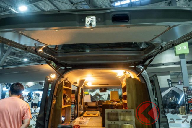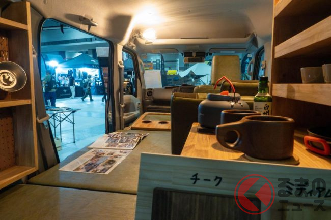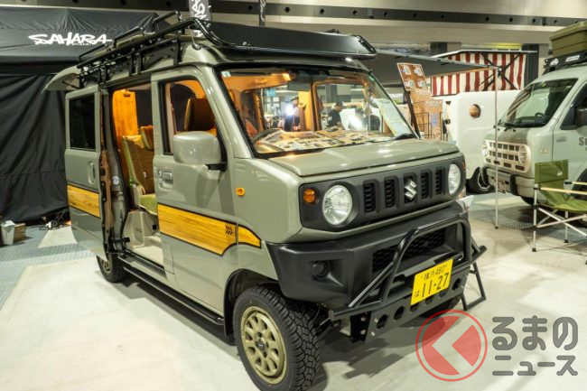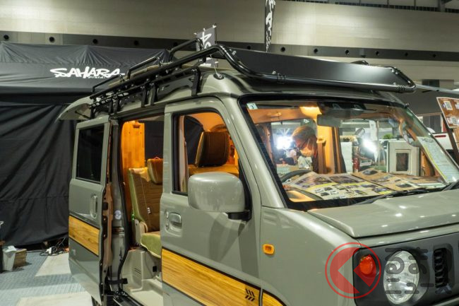“ジムニー顔”の「軽バン”SUV”」実車公開! ウッドな車中泊内装も超オシャレ!斬新すぎる「ジムリィ」とは
