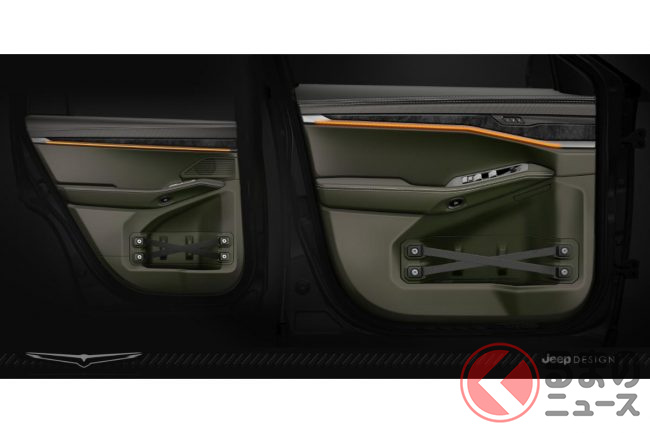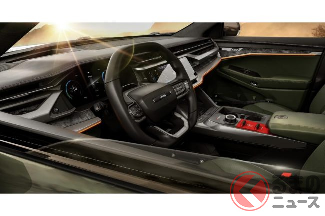 新型「カクカクSUV」初公開! オシャレすぎる「グリーン内装」が超カッコイイ! 斬新「ドアポケット」搭載の「ワゴニアS トレイルホークC」米で発表