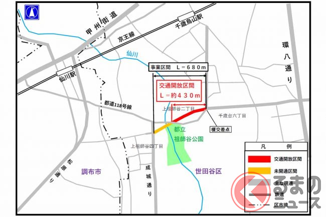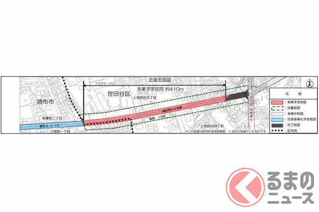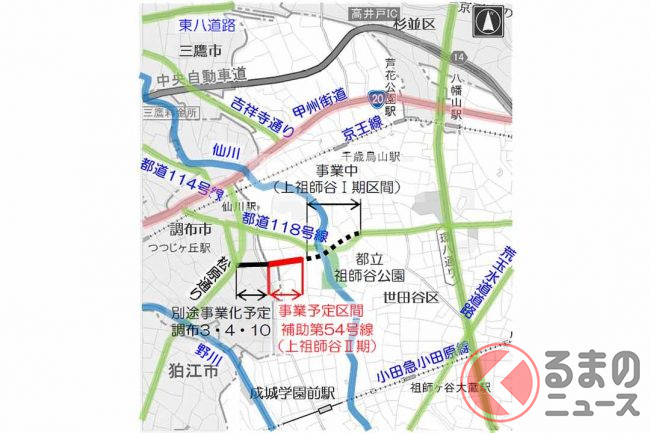この東西道路は都市計画道路「補助第54号線」に位置していて、将来的に環6の東大裏から上祖師谷の調布市境まで伸びる壮大な計画の一部となっています。