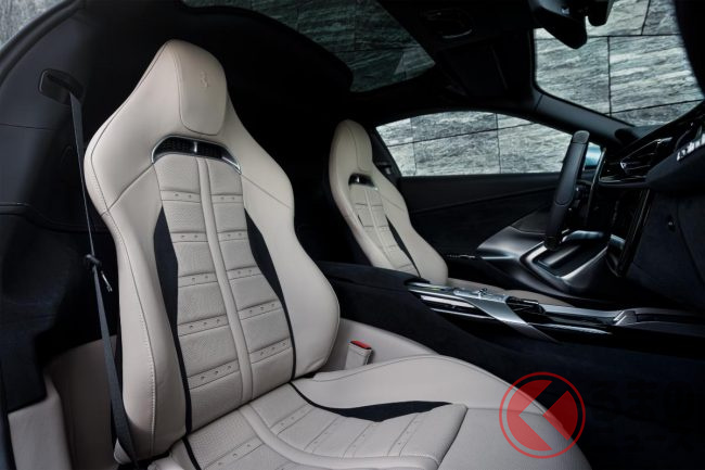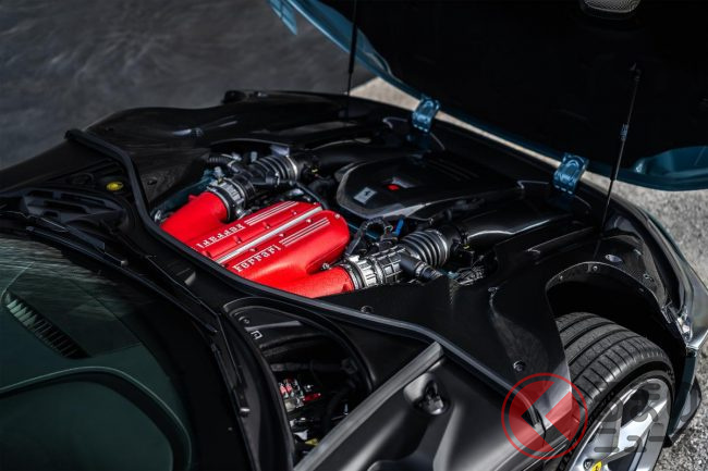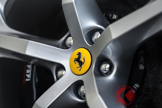 フェラーリの量産モデルとして初めてフレームの一部にリサイクル素材を採用しており、動的挙動の明確化とサスペンション精度の向上が図られています。