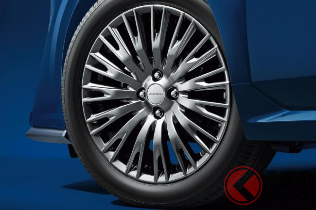 足元にはダーク金属調塗装の専用アルミホイールが採用され、プレミアム性を引き立てています。