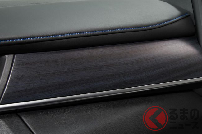 また、鮮やかな木目が特徴の高級材である紫檀の柄に、光を受けるとさりげなくブルーに輝くダークグレーを施した専用フィニッシャーを、インストパネルやコンソールの一部に採用しました。