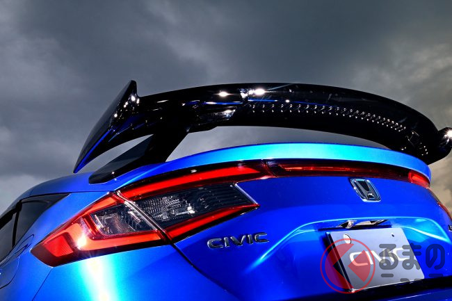 ホンダ「“スゴい”ハッチバック」初公開に大反響! 「巨大リアウイング」がカッコイイ! 「シビック タイプR」譲りの新たな空力アイテムとは