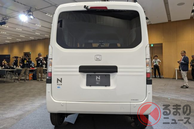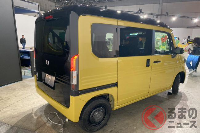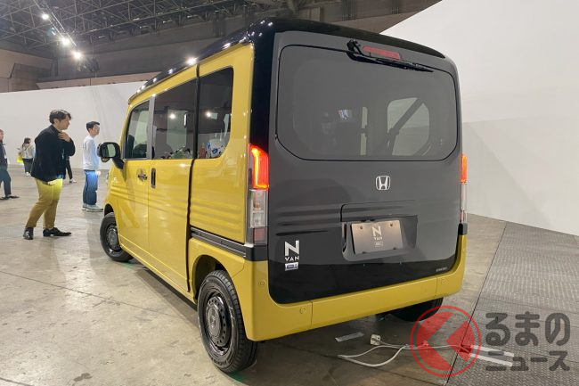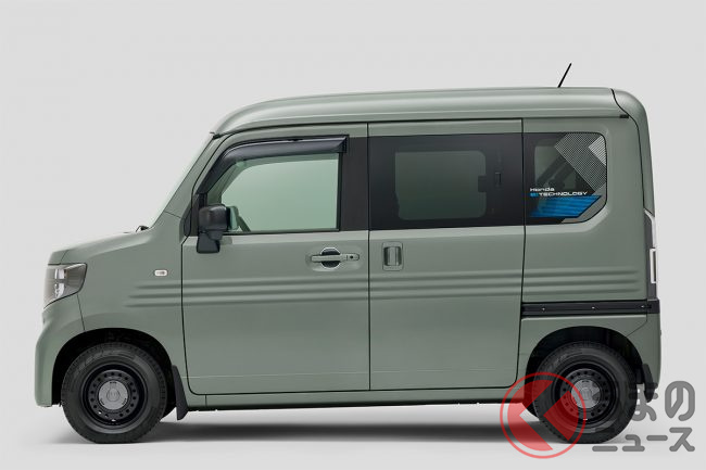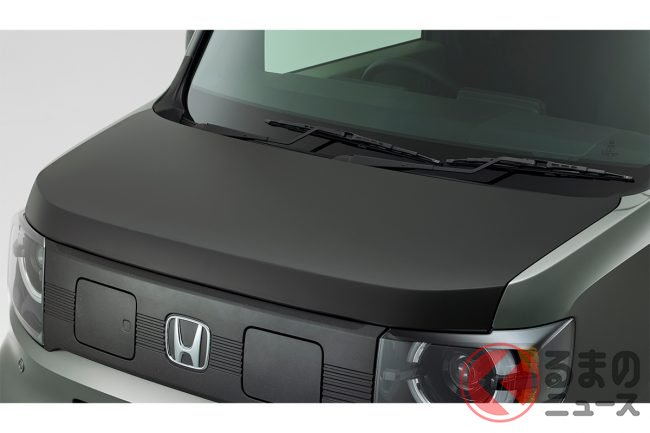 ホンダ「新型軽バン」発表! 斬新「“黒すぎ”ボンネット」&めちゃカッコイイ“デカール”設定! 新型N-VAN e:用「純正アクセ」10月発売