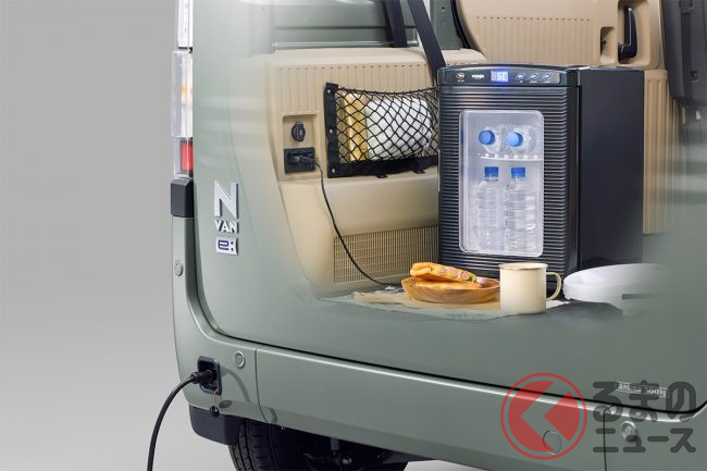 また、新型N-VAN e:のバッテリーからAC100V給電が可能な「AC外部給電器(Honda Power Supply Connector)」を設定し、最大1500Wで家電製品などの使用が可能とします。