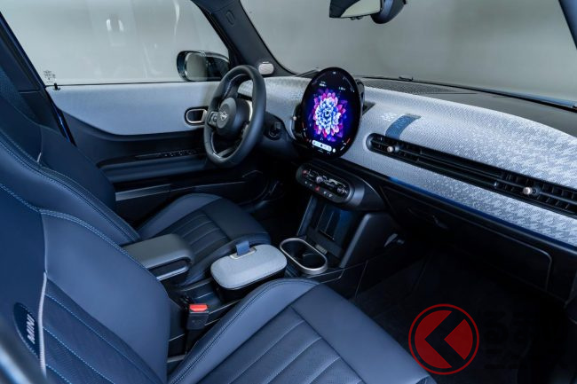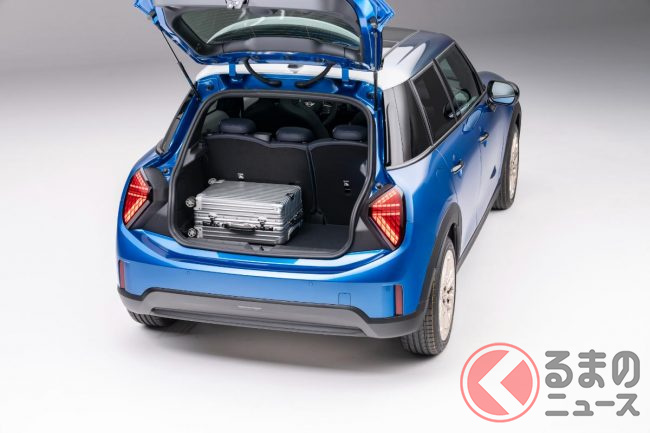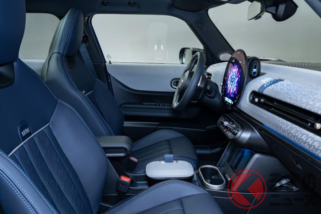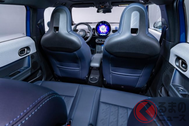 新型「小さな高級車」公開! 全長4m級ボディの新“5ドア”モデル! 丸目の「旧車デザイン」&青内装がカッコイイ「MINI」登場