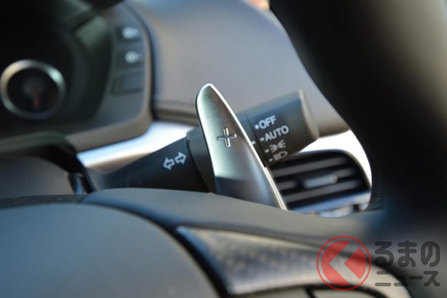 一部の車種ではDレンジの横に「+」「-」とマニュアルモードが用意されるものや、ハンドル裏にパドルシフトが備わるものもあり、いずれも「-」方向にシフトを動かすことでギヤが下がってエンジンブレーキをかけることができます。