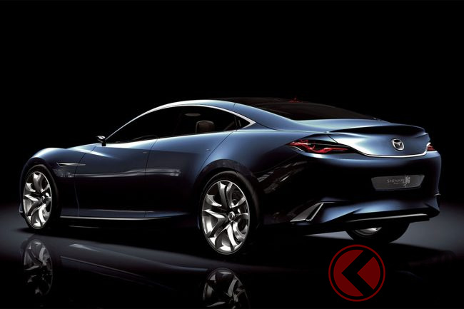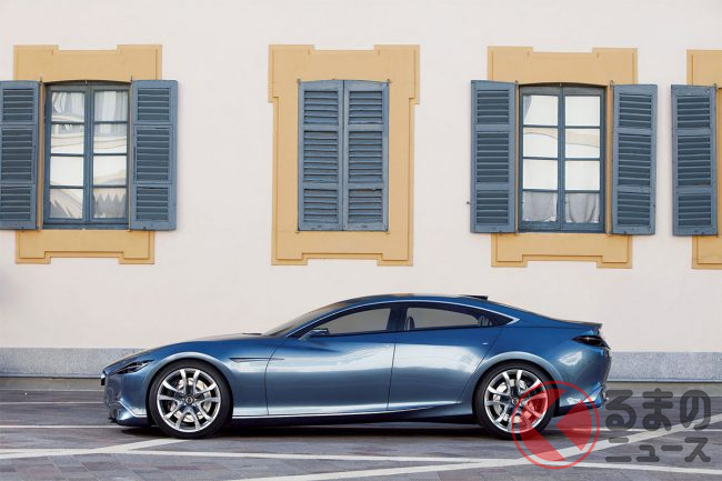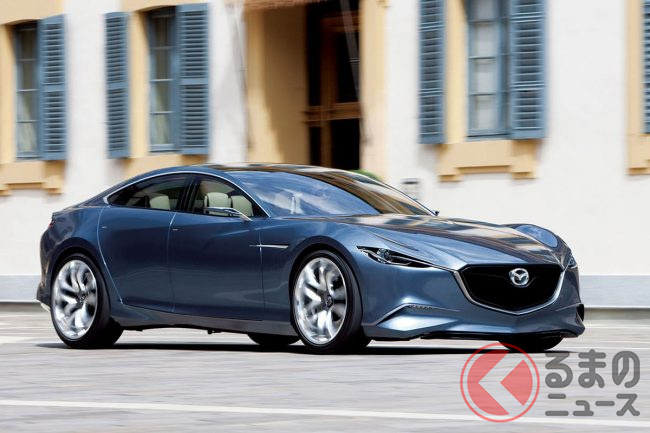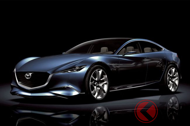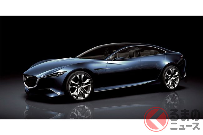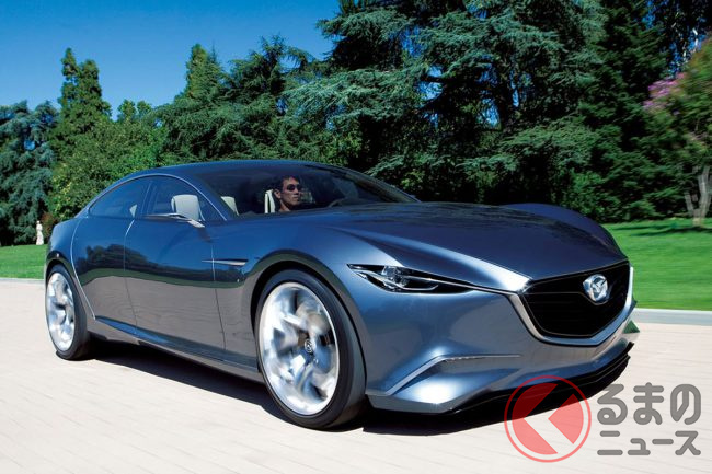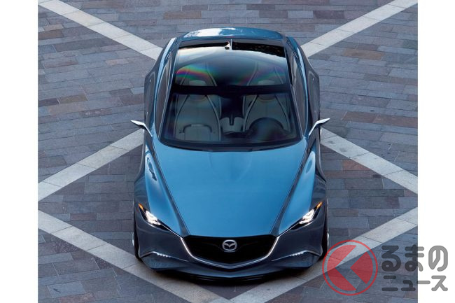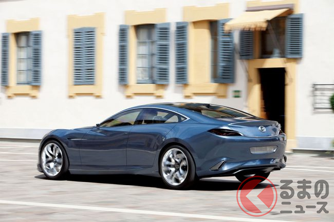 マツダ「“超すごい”4ドアクーペ」実車公開! “元祖”な「美麗デザイン」がカッコイイ! 精悍すぎる「魂動」第一弾「SHINARI(シナリ)」登場