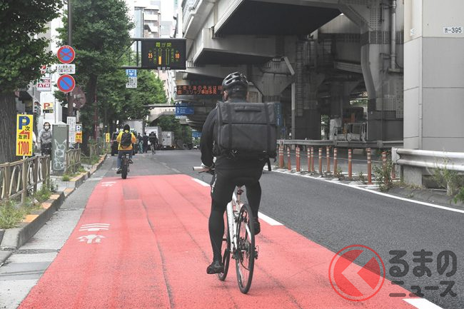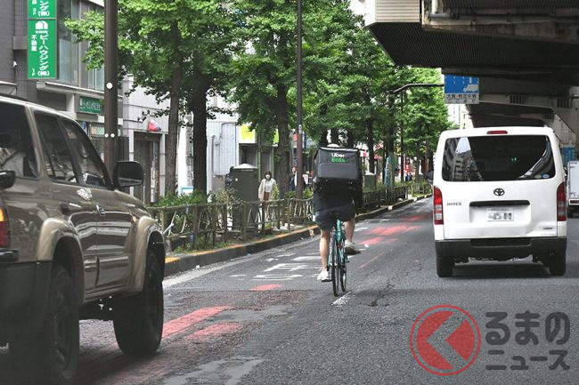 自転車は車道の路肩を走ることも多く、クルマのすぐ横をすり抜けていく状況もよく見られます。