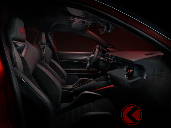 エッジで構成されたデザインは斬新で、アルファロメオの象徴である「盾」を、実体ではなく視覚的に浮き上がらせて見せるアイデアは秀逸です。