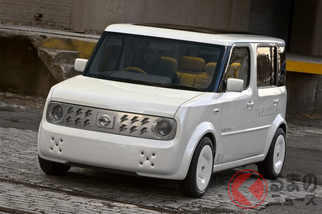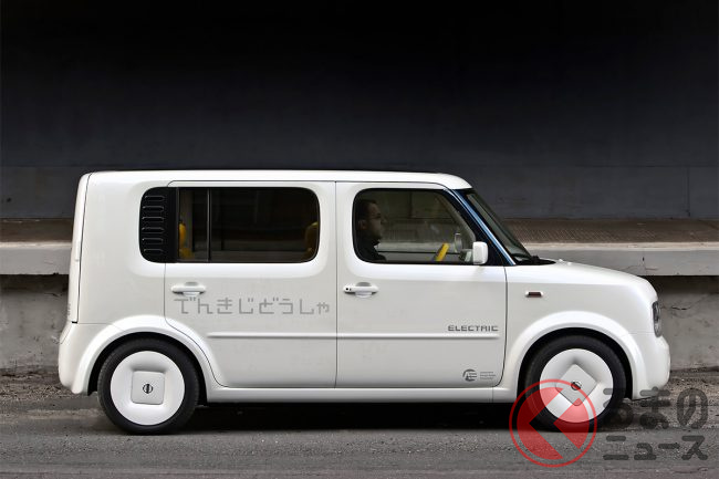 世界に先駆け量販EV(電気自動車)「リーフ」を販売した日産ですが、2008年にコンパクトハイトワゴン「キューブ」(キューブ キュービック)をベースにしたEV、その名も「でんきキューブ」を発表していました。どのようなEVだったのでしょうか。