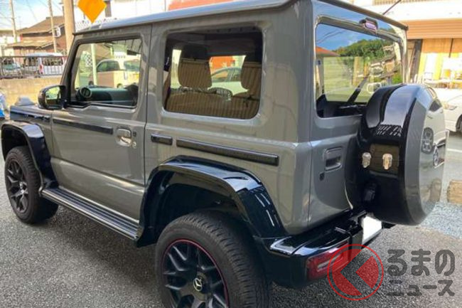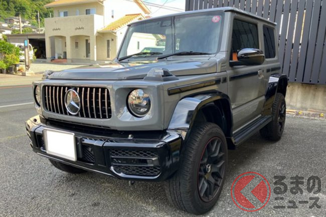 今回、中古車市場で発見された個体は、ジムニーシエラの見た目をGクラスに仕立てたモデルです。