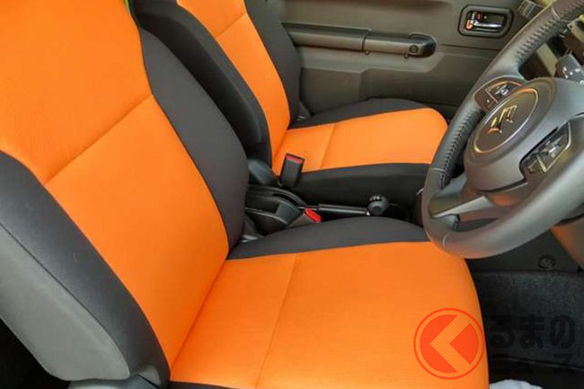 対して、インテリアは基本的にジムニーシエラのもので、センターにオレンジの配色がされたツートンカラーのシートのみオリジナルとの違いです。