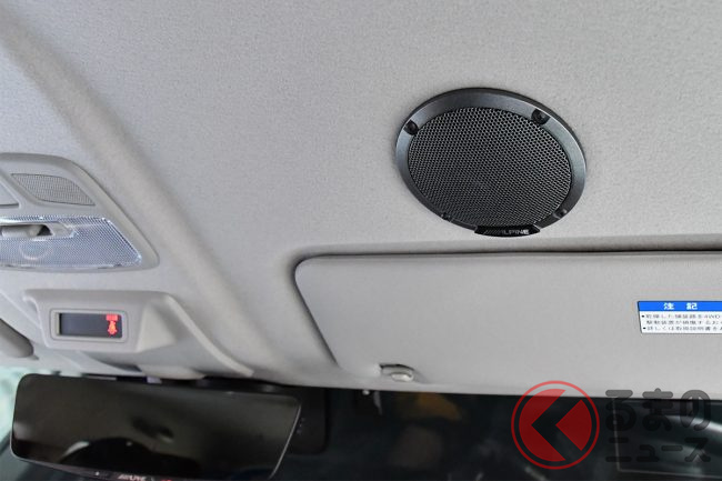 メティオサウンドの最大の特長は、フロントドア側に加えて、市販品としては初めてドライバー上方のルーフにもスピーカーが装着されるシステム構成になっていることです。付属する車種専用の型紙を使用してルーフライナーに穴あけ加工を施し(ライナーの取り外しはなし)5インチのスピーカーを装着することで、中高域と低域が強化されて、よりスピーカーが奏でるサウンドが聞き取りやすくなっているといいます。