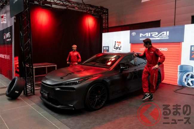 トヨタ新型「スポーティ“セダン”」実車公開に反響大! 迫力エアロ&パワートレイン強化で「マジ速そう」と評判に! マットブラックの新型「ミライ“スポーツ”C」独に登場