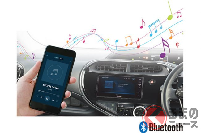 オーディオ機能としては、Bluetooth対応により、スマートフォンなどに保存された音楽データを再生でき、タイトルやアーティスト名もカーナビゲーション画面に表示できます。通話にも対応しています。