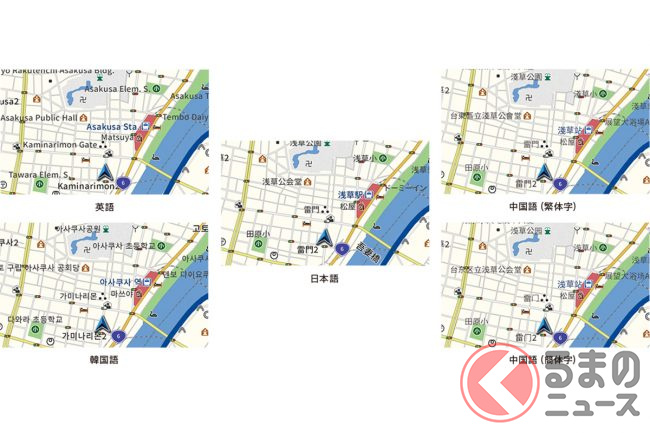 さらに、英語、韓国語、中国語(繁体字/簡体字)、日本語の多言語対応により、地図上の住所表記やルート案内音声などの機能を多言語で利用でき、外国人でも簡単に目的地やルートの設定が可能としています。