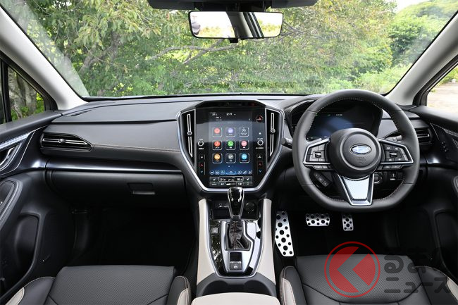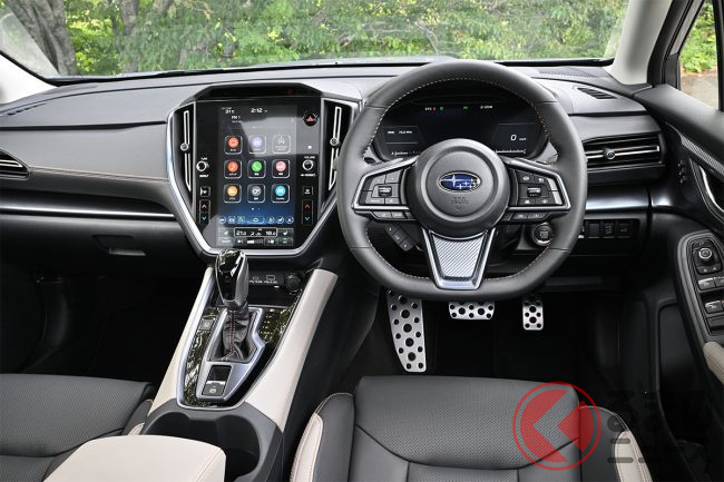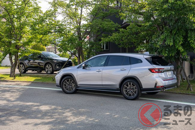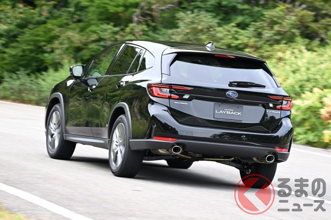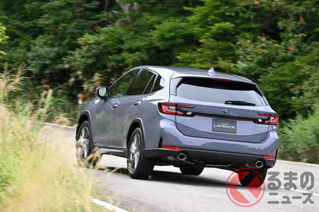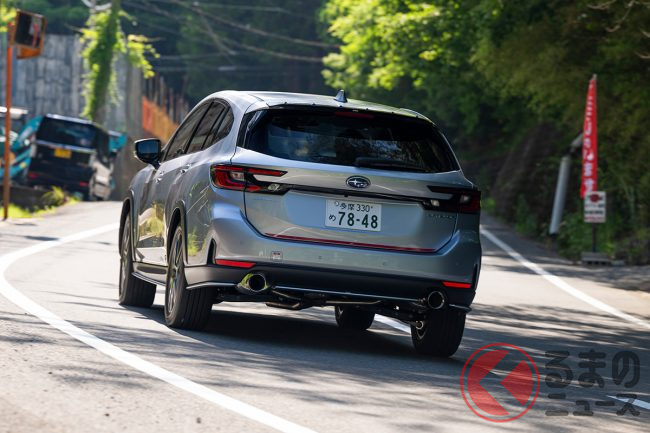 スバル「上質SUV」“STI仕様”がスポーティすぎる! 伝統の「スバルサウンド」も魅力!? 「レイバック」STIパーツ装着車の印象は?